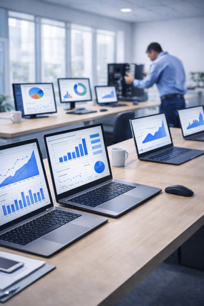 Fornecemos computadores, notebooks, impressoras, suprimentos e soluções completas de tecnologia corporativa, com garantia, suporte e condições comerciais competitivas.